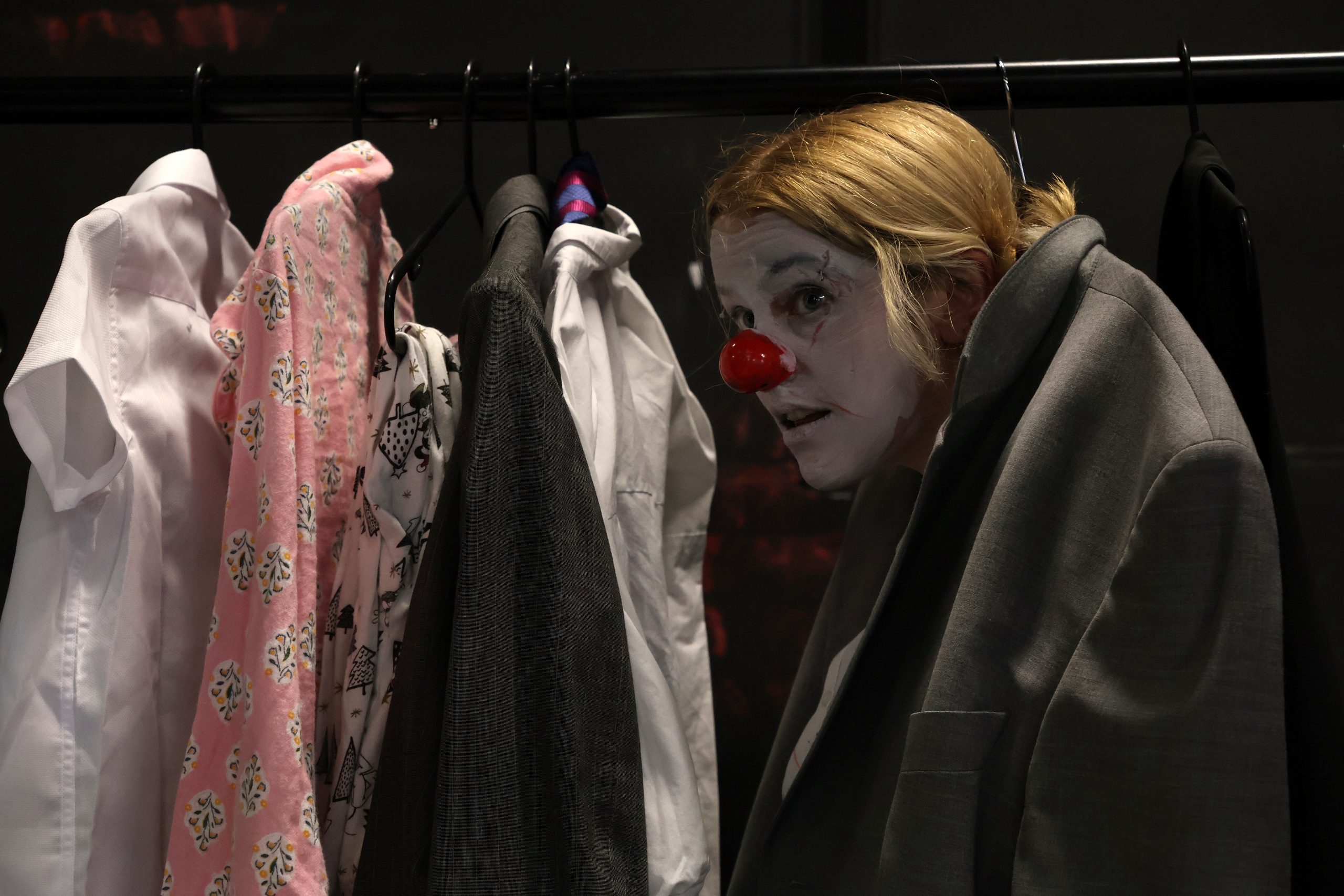 They cannot articulate a thing — yet an operatic voice narrates their inner world at full volume. Opera’s control and power collide with the raw emotional exposure of clowning.